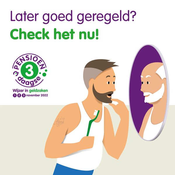 Check nu in 2 minuten of jij goed op weg bent naar jouw pensioen. Ga naar pensioen3daagse.nl/latergoedgeregeld en ontvang tips over jouw pensioensituatie en check gemakkelijk jouw pensioenbedrag.