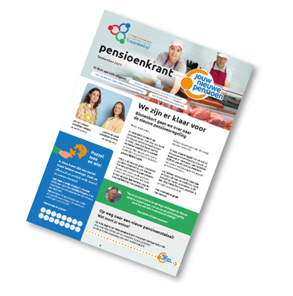 De komende dagen ontvang je een exemplaar van onze speciale pensioenkrant op de deurmat. Deze pensioenkrant staat vol met informatie over de overgang naar de nieuwe pensioenregeling.